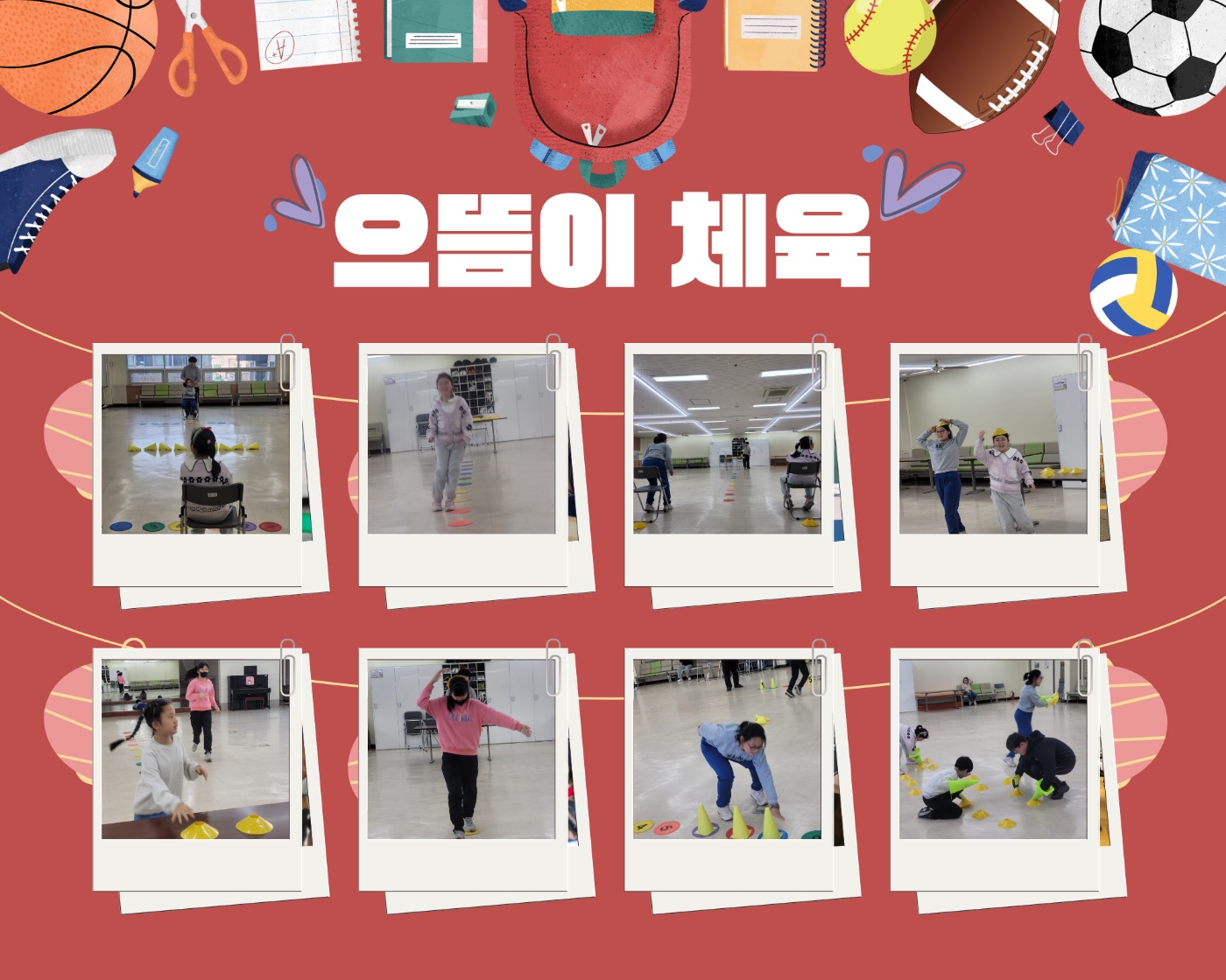 **2026년 3월 25일 수요일 으뜸이 체육프로그램**광명시지역아동센터는 매주 수요일 장애인생활체육회와함께 특수체육을 진행하고 있습니다. 오늘도 활기차게 시작한 으뜸이 체육수업!!선생님과 반갑게 인사를 나눈 뒤 스트레칭으로 몸울충분히 풀고 체력단련으로 본격적인 수업이 시작되었어요. 첫번째 활동은 '달려가 노란콘 가지고 오기' 게임일대일로 진행된 이 활동은 시작전부터 긴장감이팽팽했답니다.(❁´◡`❁)"시작"이라는 신호가 떨어지기도 전에 먼저 출발해버리는귀여운 반칙을 하는 친구가 있었을 만큼우리들만의 리그에 열정이 넘쳤답니다.누구보다 빠르게 콘을 가져오려는 모습에서 울 친구들의에너지와 승부욕도 느낄수 있었답니다. 두번째 활동은 '숫자판 징검다리 건너기' 게임일직선으로 놓인 숫자판을 밟으며 뛰어가 고깔모자를..