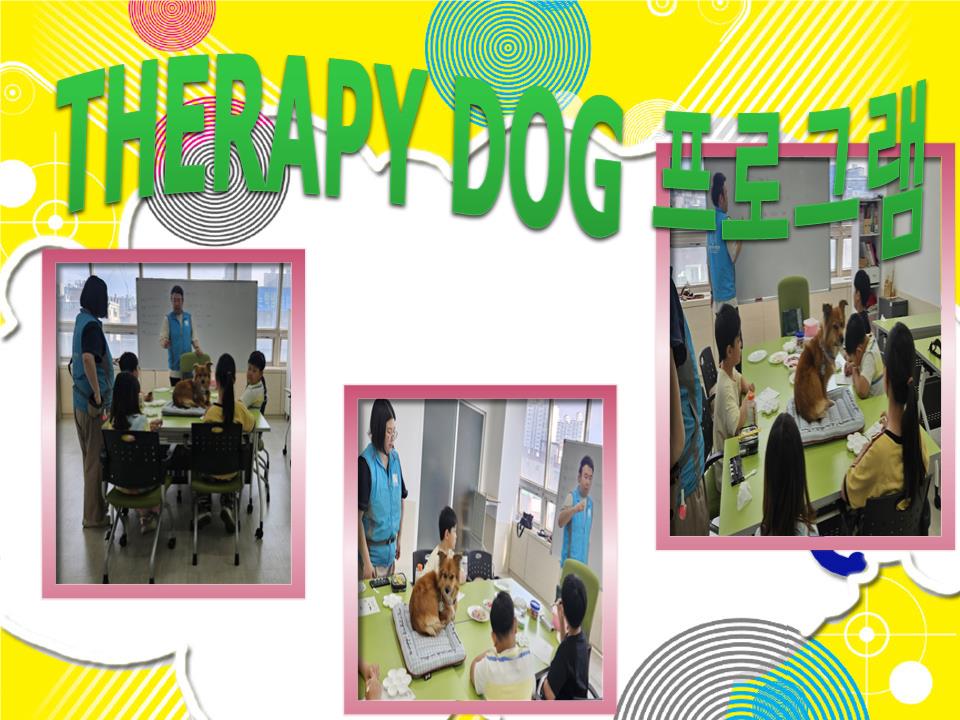 2025년 6월 10일 화요일 Therapy dog 프로그램 광명시지역아동센터 매주 화요일 Therapy dog 프로그램을 진행하고 있습니다 아이들이 기다리고 기다리던 시간 강아지 친구들과 함께하는 시간이랍니다 테라피독은 온순하고 친화적인 성격으로 다양한 사람들과 잘 어울릴 수 있습니다기본 복종 훈련이 잘 되어 있어서 낯선 환경에서도 침착하고 순종적입니다사회화가 잘 되어 있어 아이, 노인, 장애인 등 다양한 대상과 문제없이 교류 가능합니다그래서 인지 강아지들은 얌전하게 프로그램시간을 함께 합니다 강아지들이 먹으면 되는 음식 안되는 음식 등을 배우며 우리 아이들은 귀여운 강아지들과 함께 오늘도 정서적으로 안정된 하루하루를 지냅니다